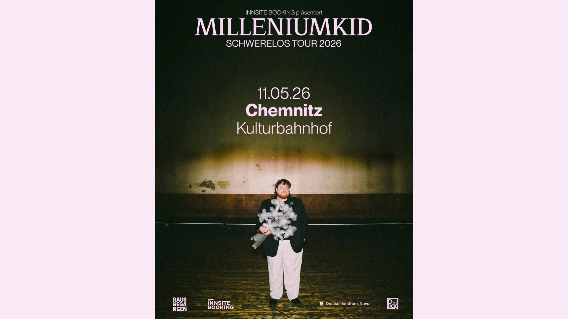 Mit der Schwerelos Tour bringt MilleniumKid emotionalen, energiegeladen Sound, der unter die Haut geht, auf die Bühne! Am 11.05.2026 wird er im Kulturbahnhof in Chemnitz zu Gast sein. Tickets sind ab sofort verfügbar.